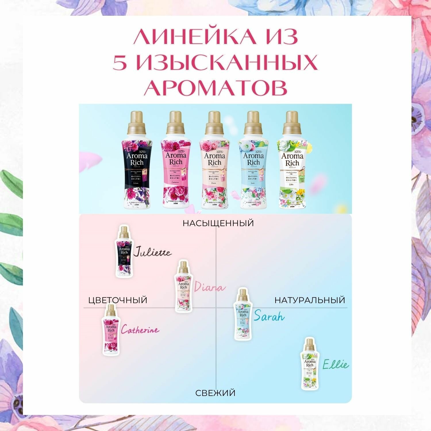 LION Кондиционер для белья Элли формула сохранения неизменного аромата и красоты тканей / с натуральными маслами Aroma Rich Ellie 480 мл