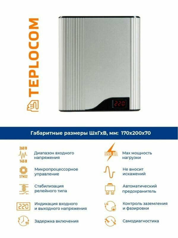 Стабилизатор напряжения TEPLOCOM ST-555-И, 555 ВА, Uвх. 220 В
