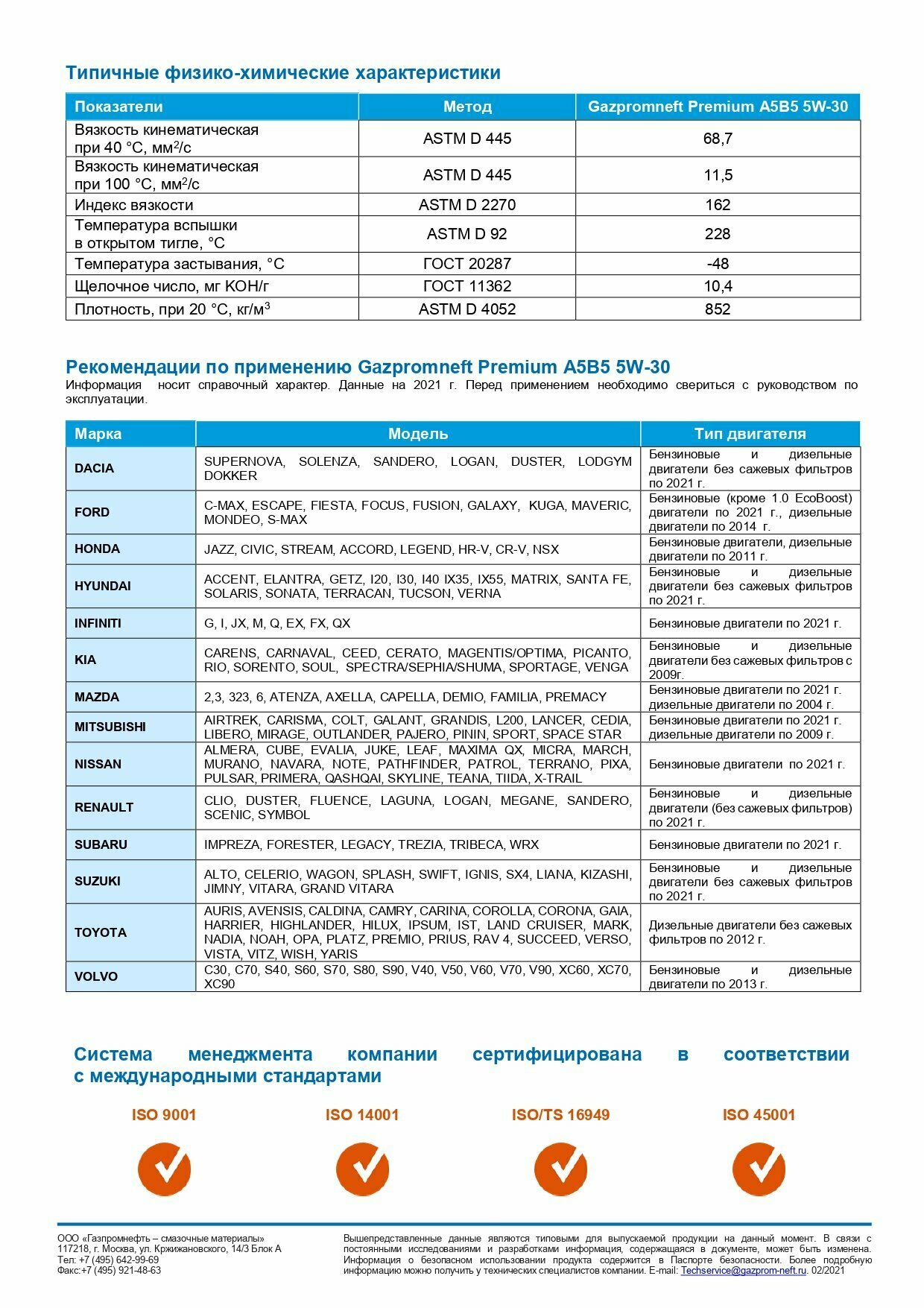 Gazpromneft Масло premium a5b5 5w-30 1л 253142584 .