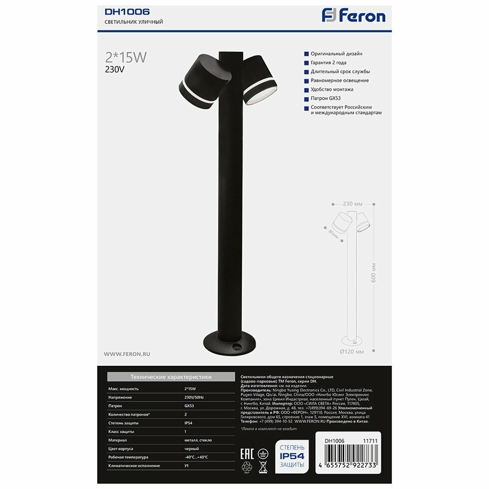 Feron Светильник садово-парковый, 230V 2*GX53 DH1006, черный (столб) 11711