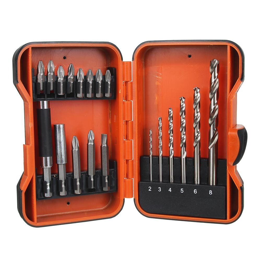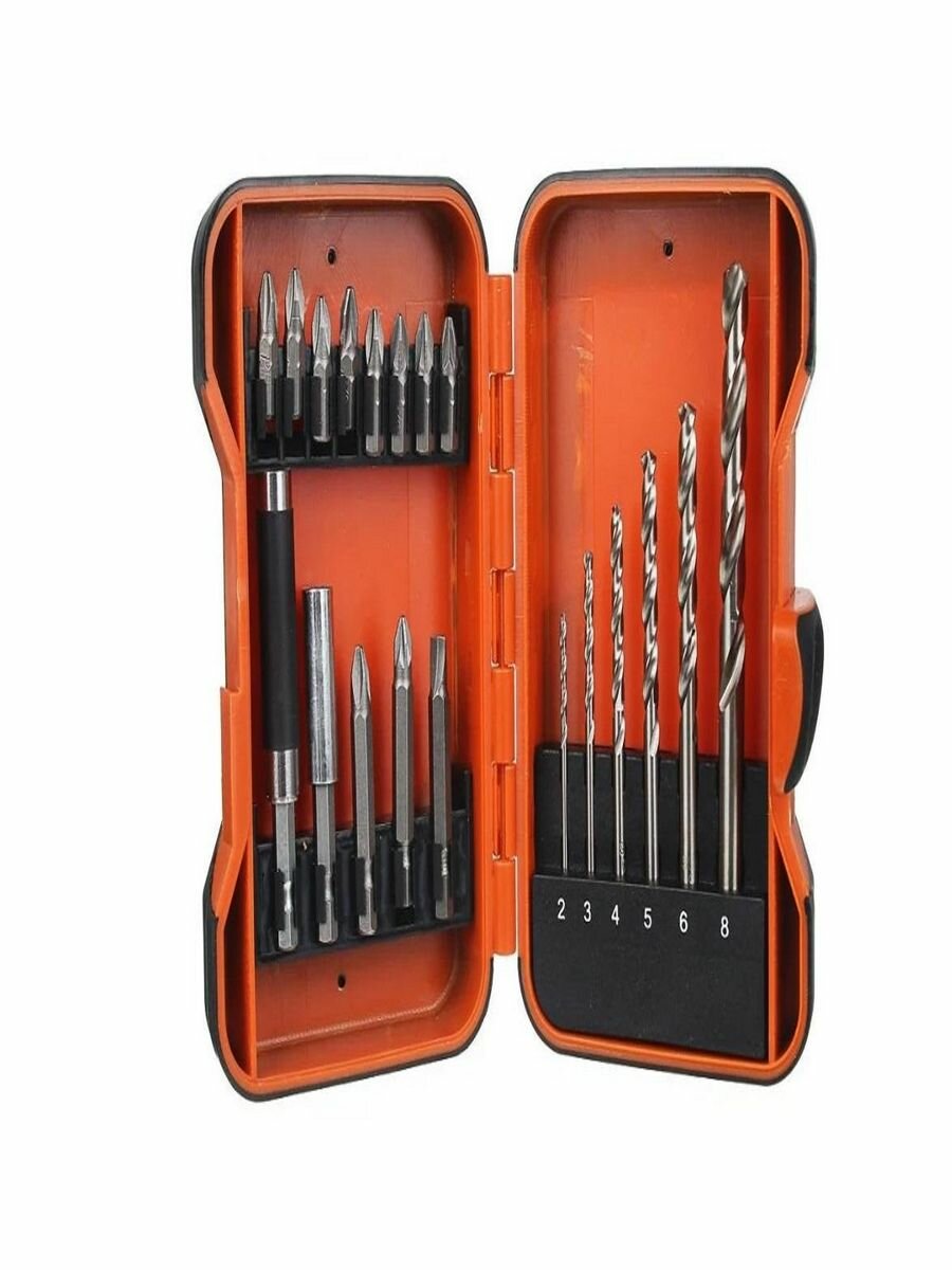 Набор сверл ермак Набор сверл по металлу и бит с магнитным держателем 19 предметов 604-010
