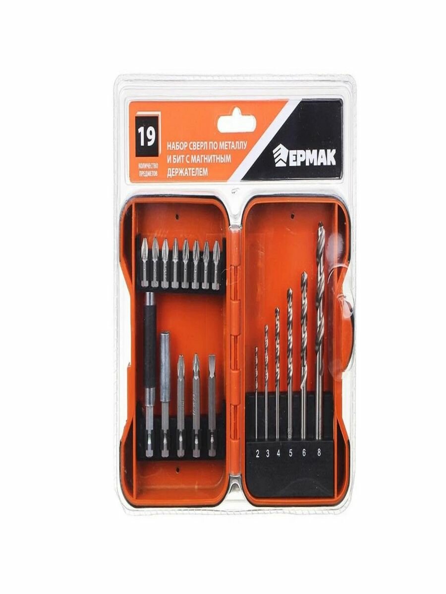 Набор сверл по металлу и бит с магнитным держателем, 19 предметов Ермак