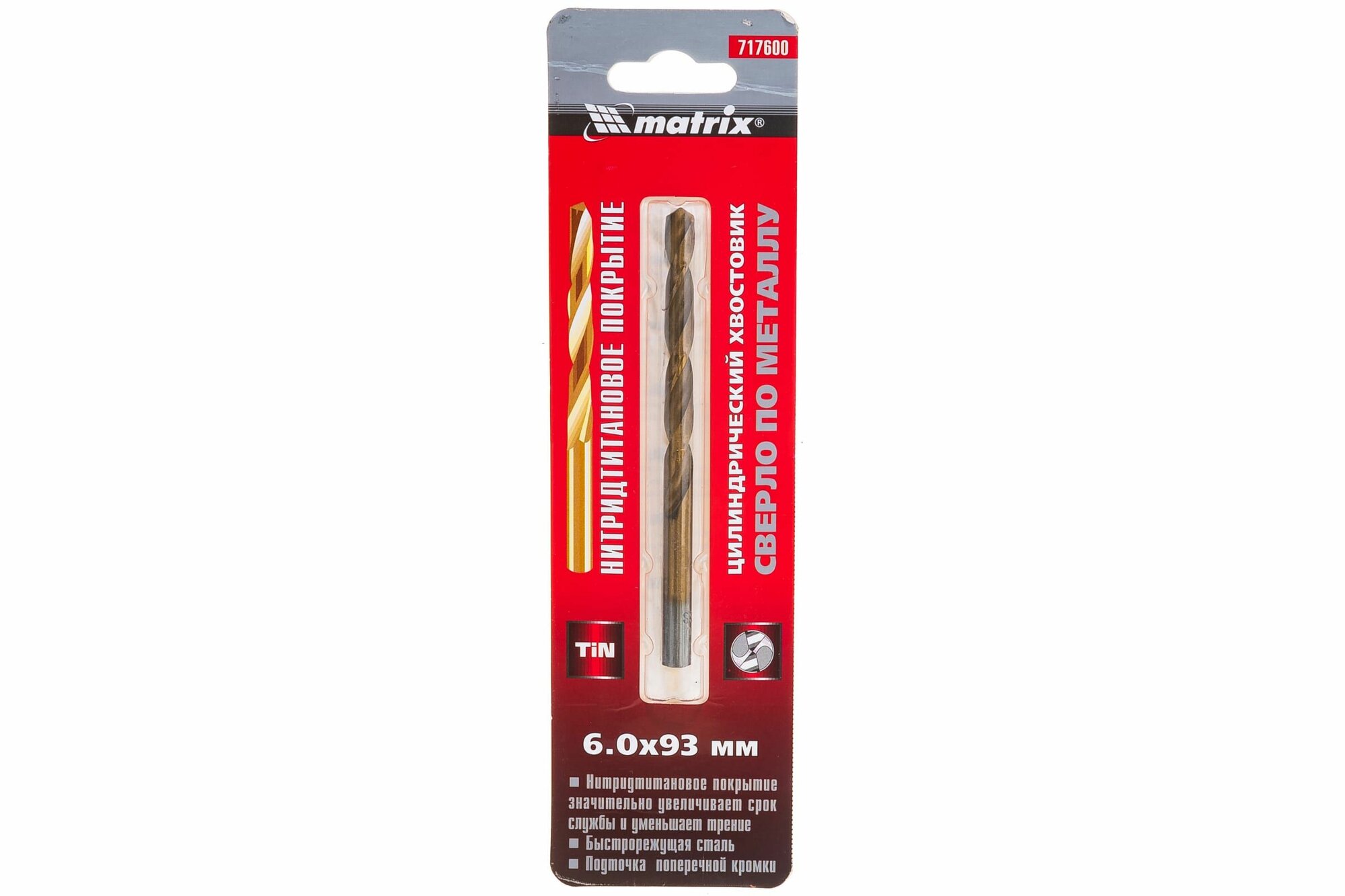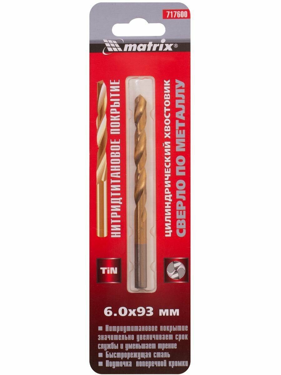 MATRIX 717600 Сверло по металлу 6.0х93мм HSS Titanium MATRIX