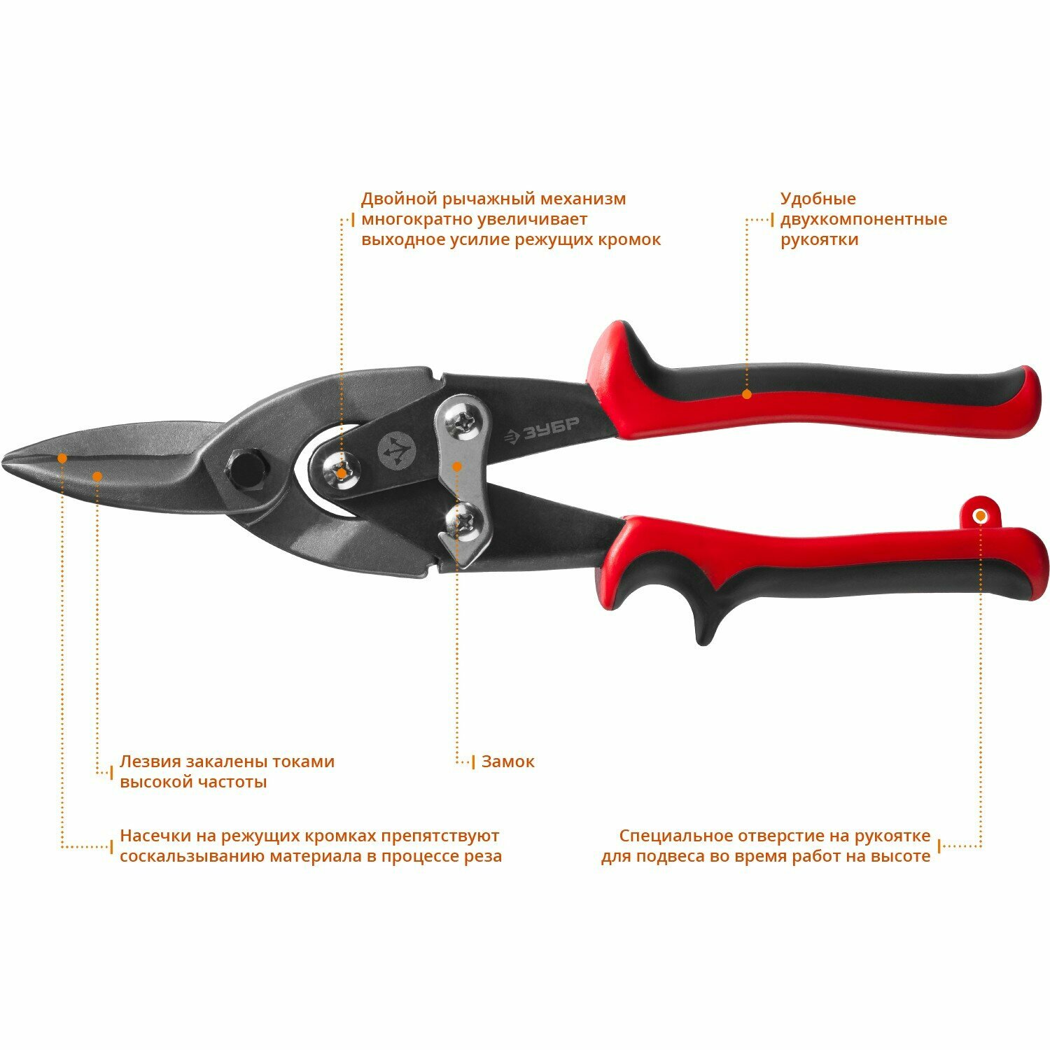 Ножницы по металлу ЗУБР 23140-S двухрычажные, прямые, У8А, 250 мм