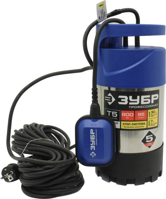 Насос погружной дренажный Зубр Профессионал Т5 НПЧ-Т5-800-С