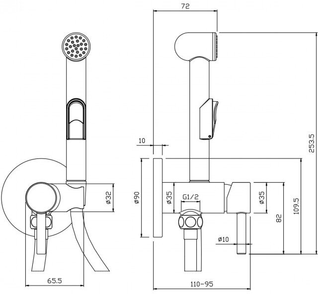 Гигиенический душ Rossinka X25-51 со встраиваемым смесителем