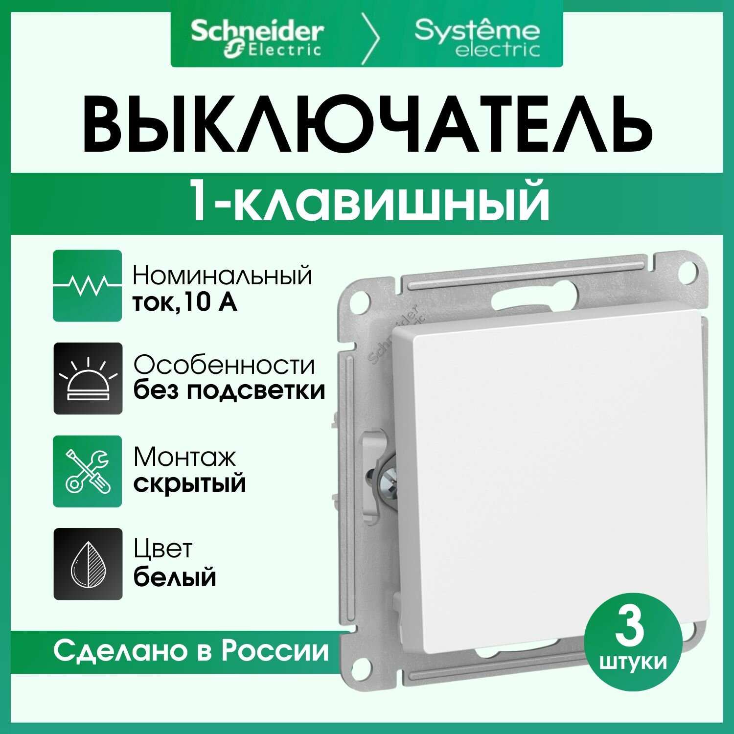 СохранитьВыключатель одноклавишный белый 3шт Schneider Electric Atlas Design ATN000111 интересное: