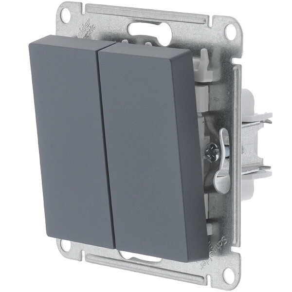 Выключатель электрический Systeme Electric Atlas Design 2-клавишный, 10А, 10 AX, Карбон ATN001051 - 5 шт.