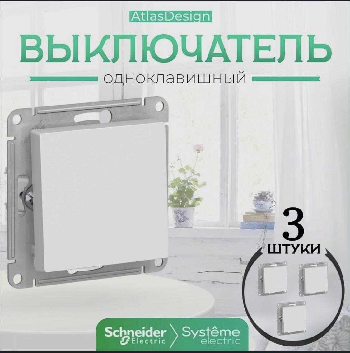Выключатель Systeme Electric / Систем Электрик AtlasDesign, 10АХ схема 1, белый одноклавишный, ATN000111 / переключатель