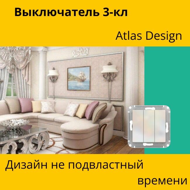 Выключатель трехклавишный AtlasDesign сх.1+1+1, 10АХ, Бежевый, ATN000231 1шт