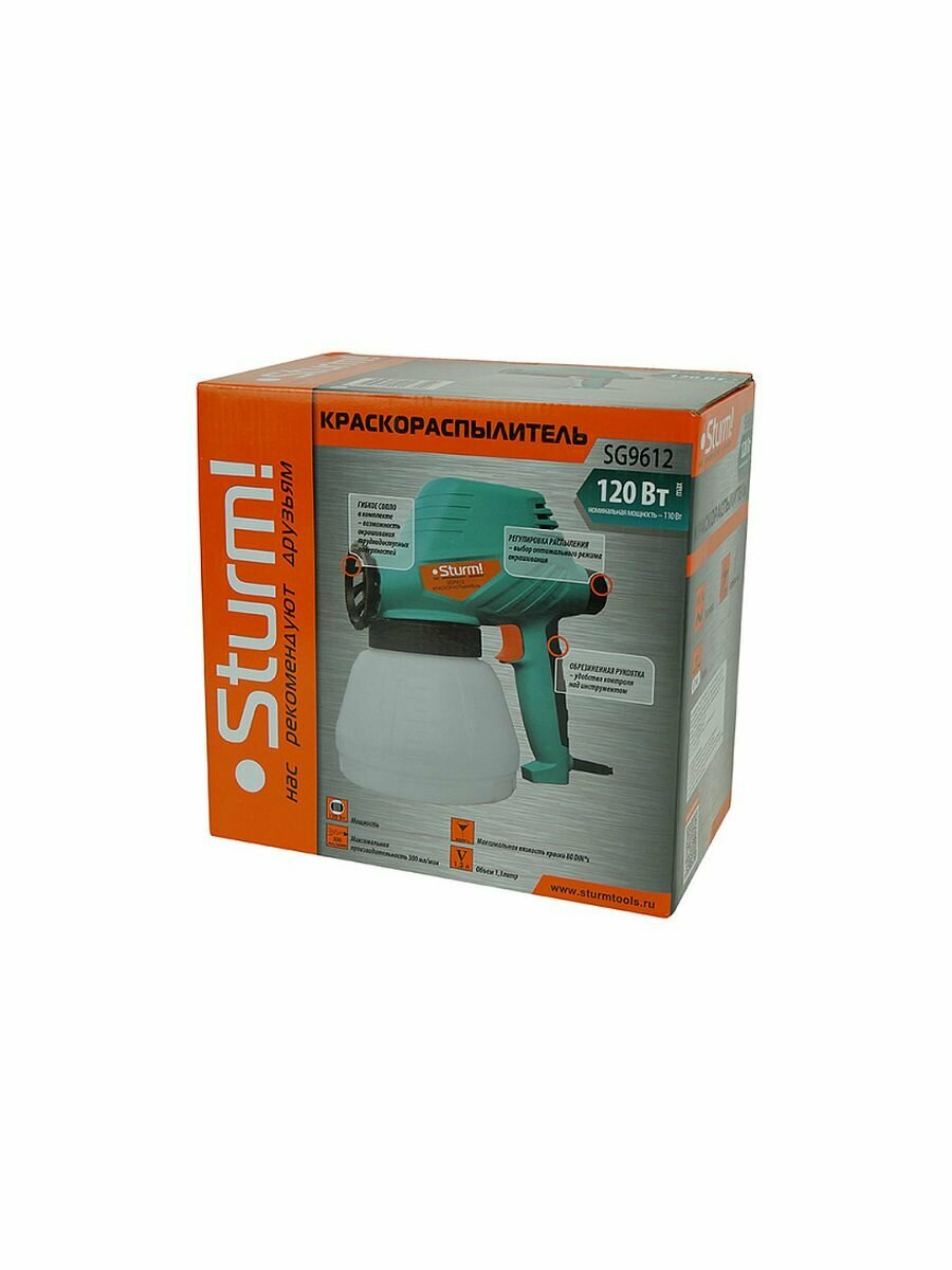 SG9612 Краскопульт Sturm!, 120 Вт, 300 мл/мин, 80 DIN, бак 1 л, регул. Интенс. Распыления Sturm!