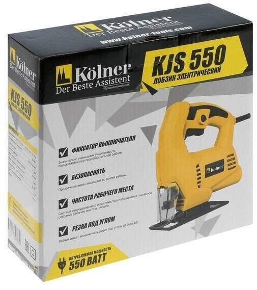 Kolner KJS 550 (10шт) Лобзик электрический 550 Вт, частота ходов 3000 ходов/мин, амплитуда полотна 18 мм, максимальная глубина пропила дерева 60мм, наклон реза 45град