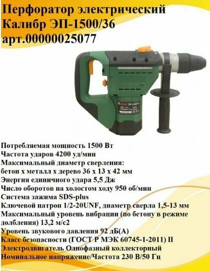 Калибр Перфоратор Электрический Эп-1500/36