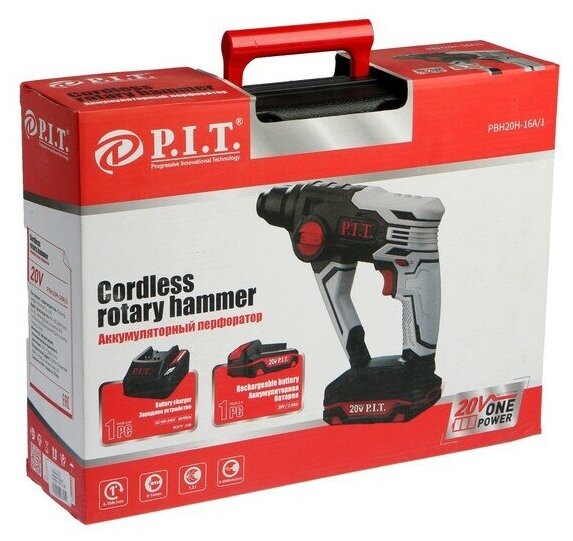 Ниже Вы можете прочитать отзывы на Перфоратор аккумуляторный P.I.T. PBH20H-16A SOLO (20В, 1,2Дж, 2-х реж. макс.бур 16мм, SDS+, коробка), ознакомится с подробными характеристиками, посмотреть интересные обзоры и фотографии на Перфоратор аккумуляторный P.I.T. PBH20H-16A SOLO (20В, 1,2Дж, 2-х реж. макс.бур 16мм, SDS+, коробка).