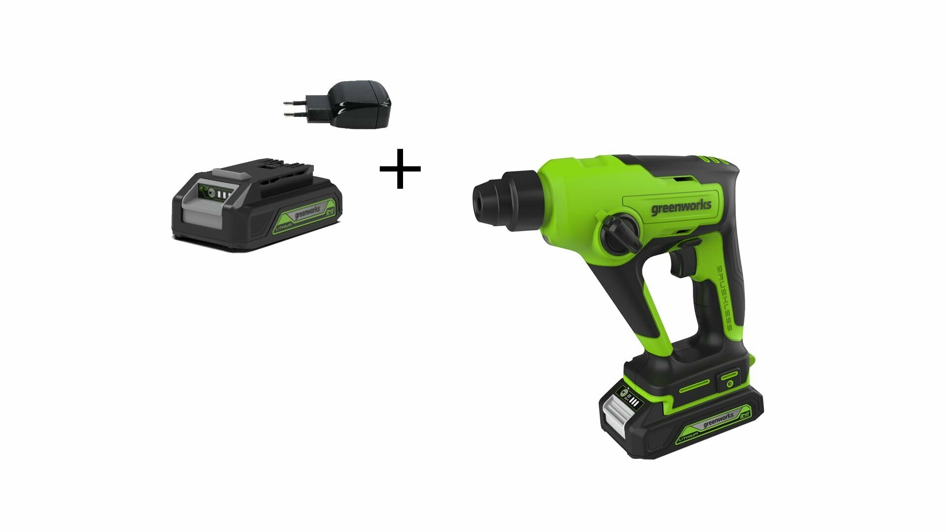 СохранитьПерфоратор аккумуляторный бесщеточный Greenworks Арт. 3803107UA, 1,2 ДЖ, 24V, c 1хАКБ 2Ач и ЗУ, в сумке интересное: