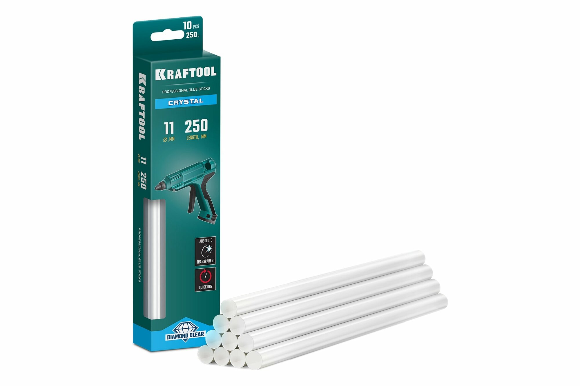 KRAFTOOL Cristal 11х250 мм, 10 шт, Кристально клеевые стержни прозрачные (06846-10)