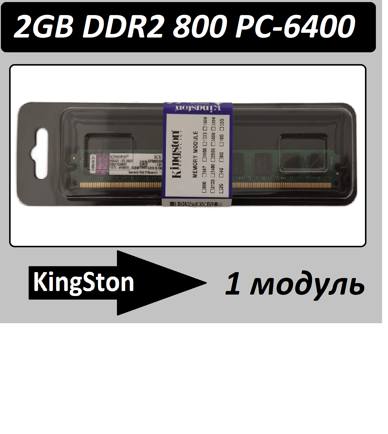 Оперативная память KINGSTON DDR2 2GB PC2-6400, 800MHz (KVR800D2N6/2G)