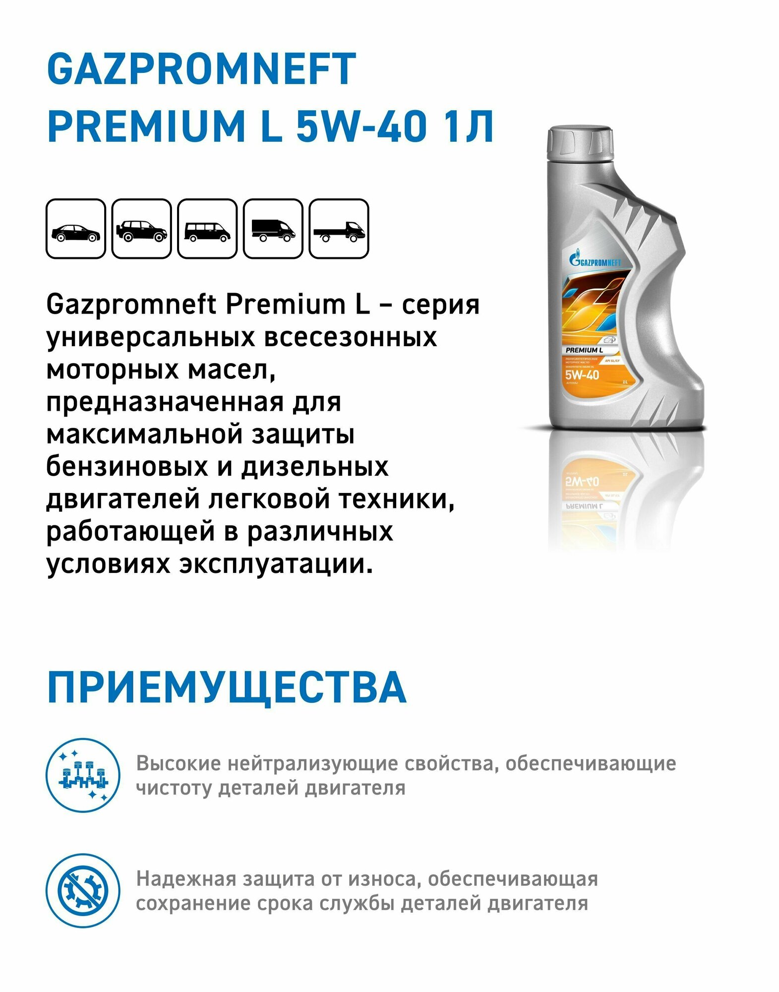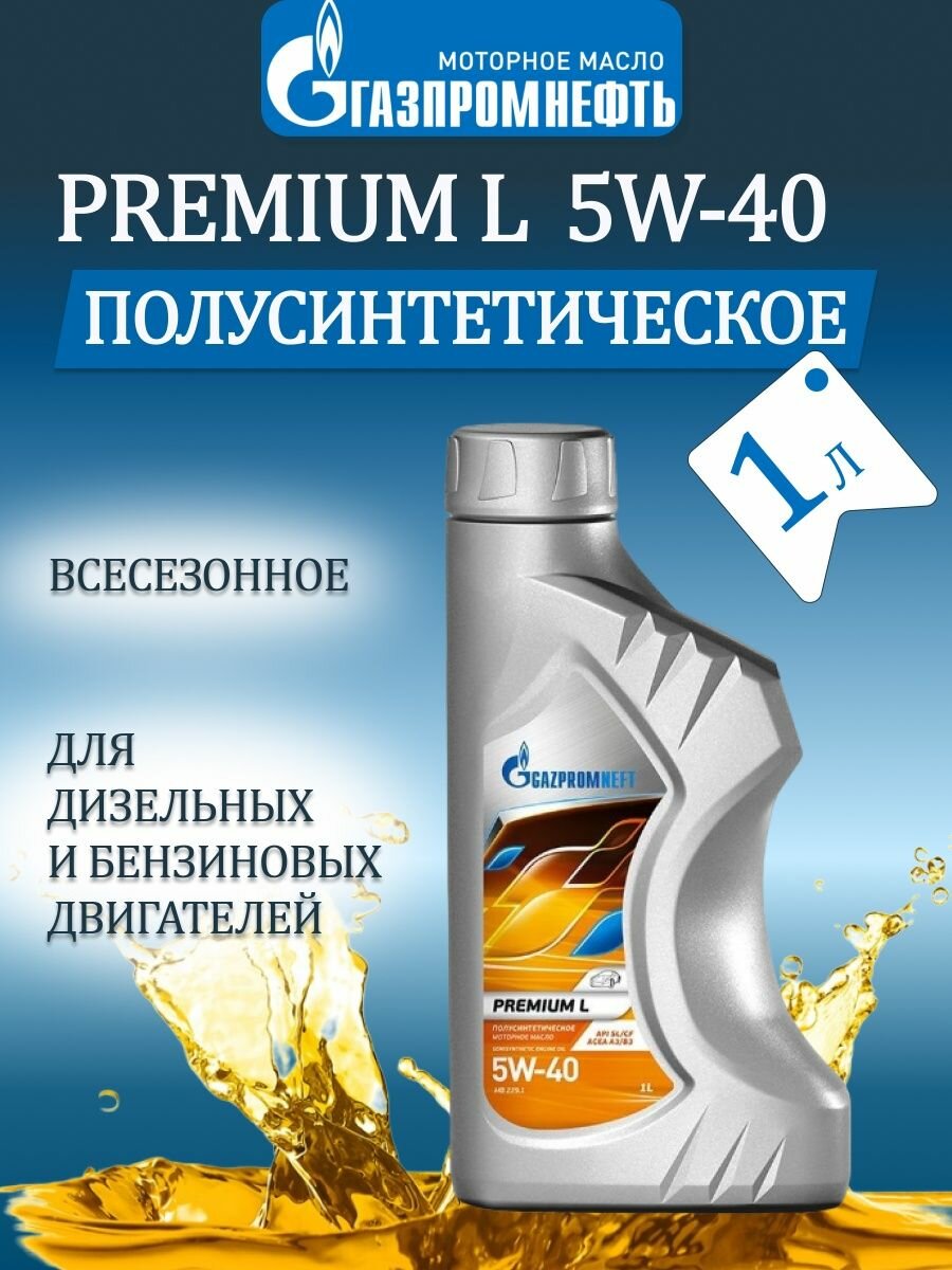 Моторное масло GAZPROMNEFT Premium L, 5W-40, 1л, полусинтетическое [2389900119]