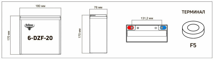 RuTrike Тяговый гелевый аккумулятор RuTrike 6-DZF-20