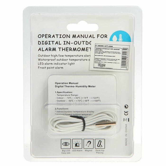 Термометр LTR-13 электронный выносной датчик 90 см белый интересное: