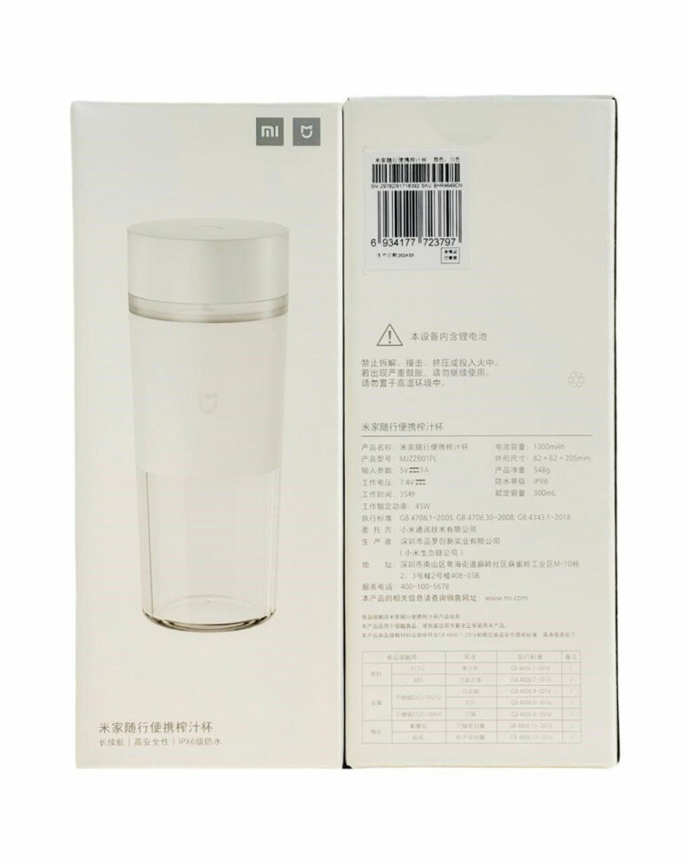 Портативный блендер Xiaomi Mijia Portable Juicer Cup MJZZB01PL, white, CN