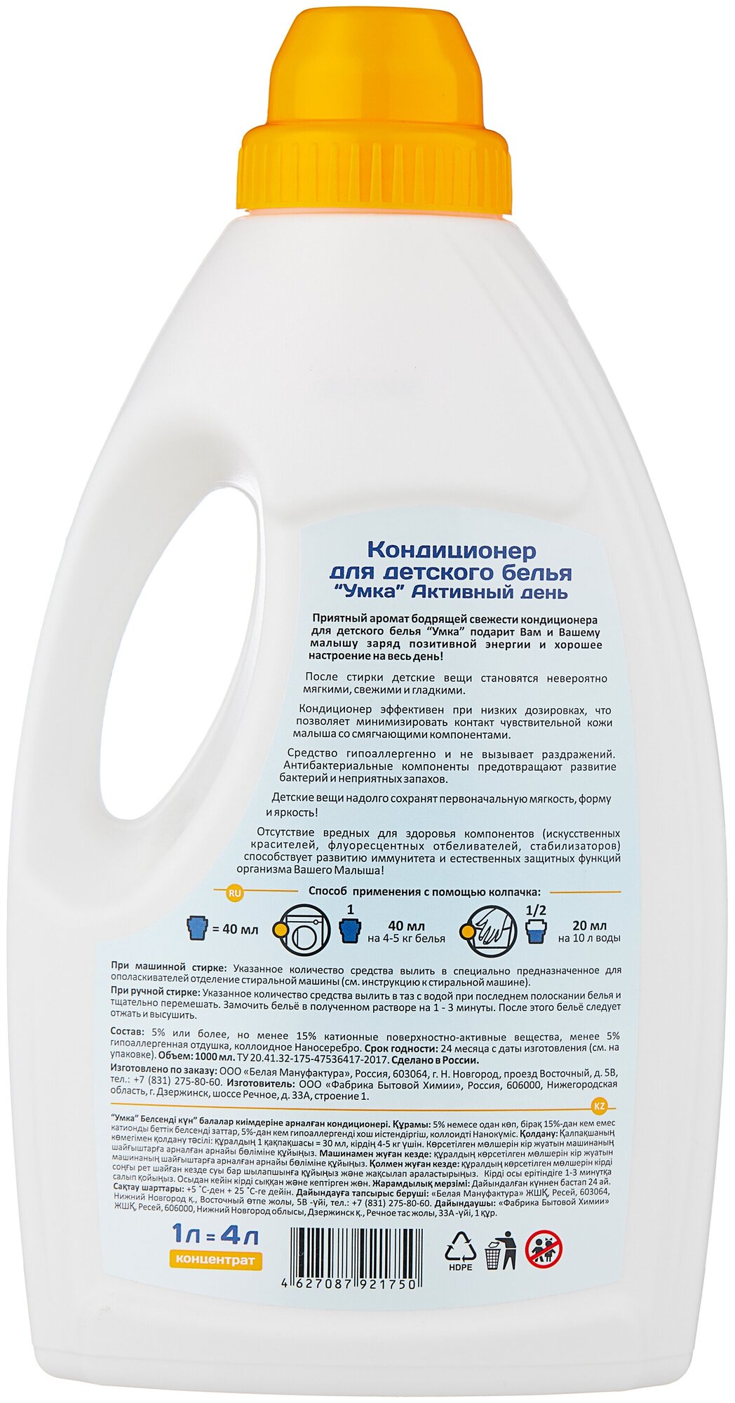 Кондиционер "Умка - Активный день", для детского белья, 1 л