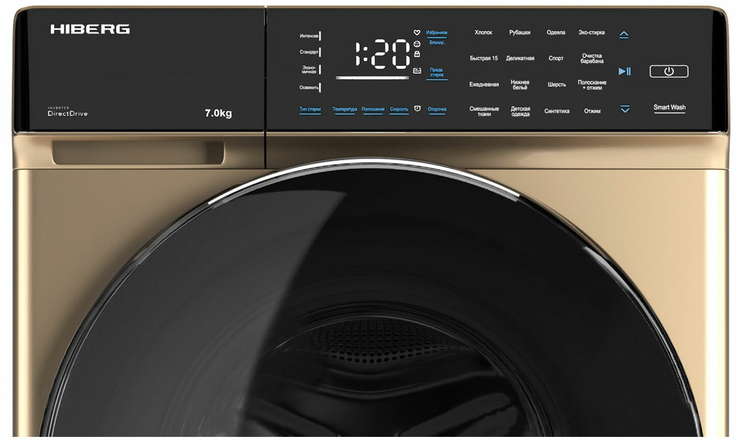 Стиральная машина HIBERG i-DDQ9 - 712 G, инвертор, прямой привод, 7 кг загрузка, 1200 об/мин, 16 программ, Золотистый
