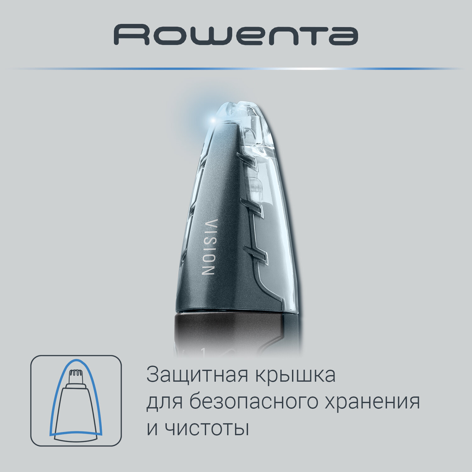 Триммер для носа и ушей Rowenta Cpecialist TN3011F0, с лезвиями из нержавеющей стали, защитной крышкой, синий