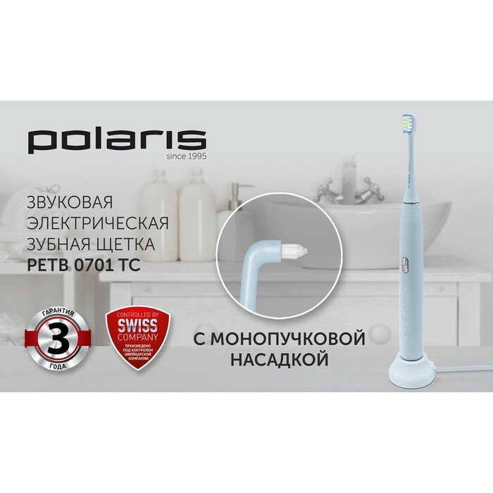 Купить POLARIS Электрическая зубная щётка Polaris PETB 0701 TC, 3 Вт, 5 режимов, 3 насадки, голубой