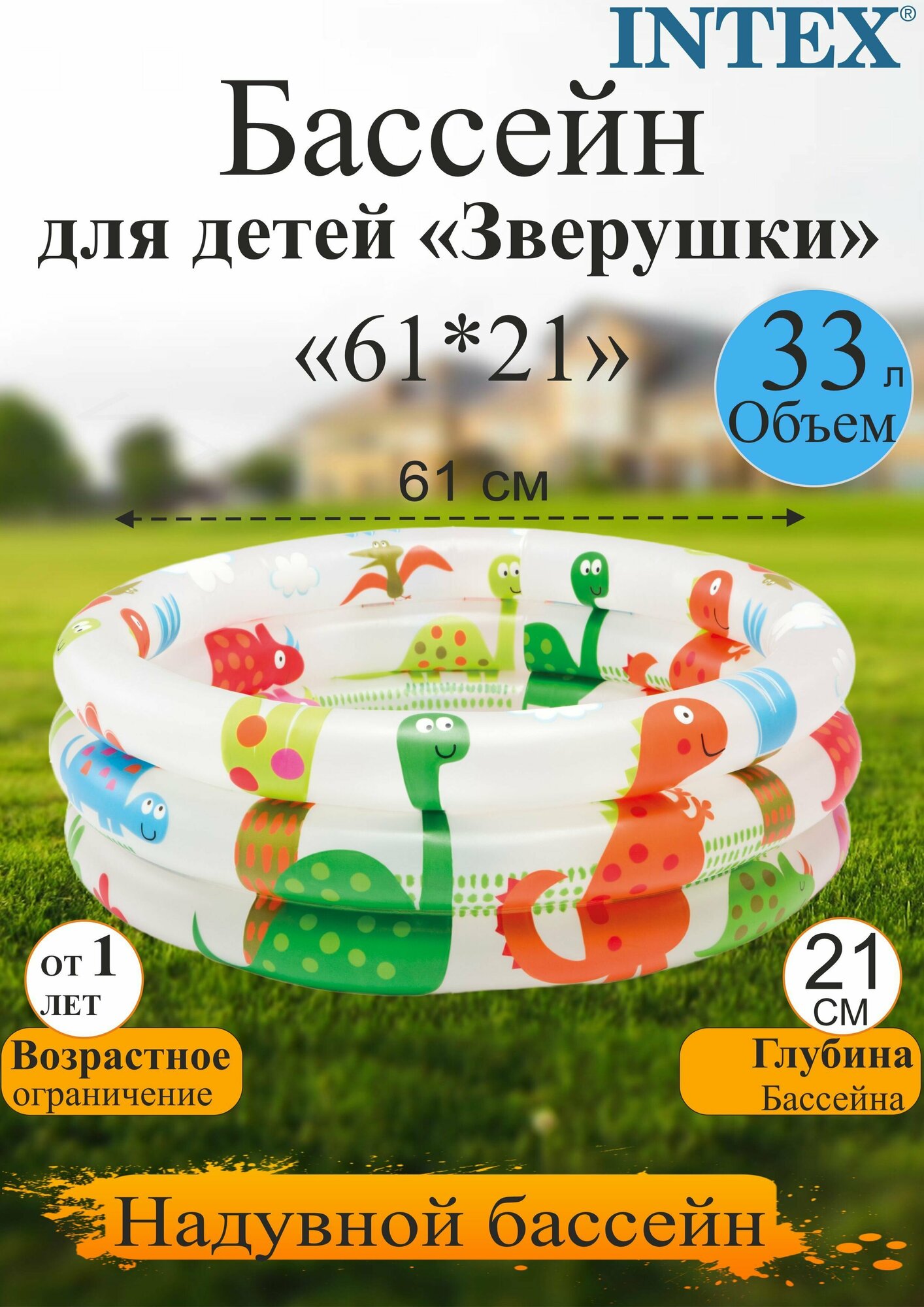 Бассейн надувной Intex, 61х22 см, Животные, 57106NP, 33 л