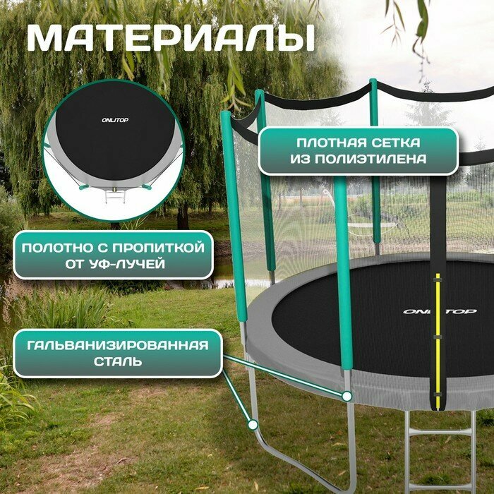 Батут ONLITOP, диаметр 366 см, высота сетки 173 см + лестница, максимально допустимый вес 180 кг, цвет серый, салатовый