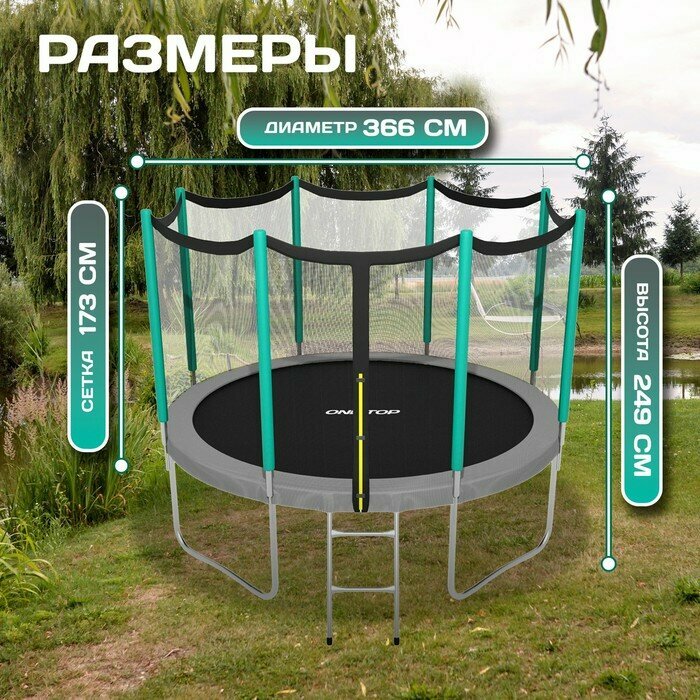 Батут ONLITOP, d 366 см, с сеткой высотой 173 см с лестницей, цвет серый/салатовый каркасный, детский и взрослый, диаметр 3,66 м, максимальная нагрузка 180 кг, уличный большой, для дачи, огромный батут манеж для дома, онлитоп