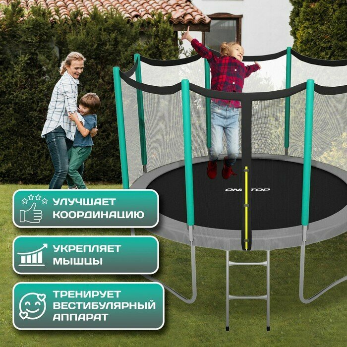 СохранитьБатут ONLITOP, d=366 см, с сеткой высотой 173 см + лестница, цвет серый/салатовый интересное:
