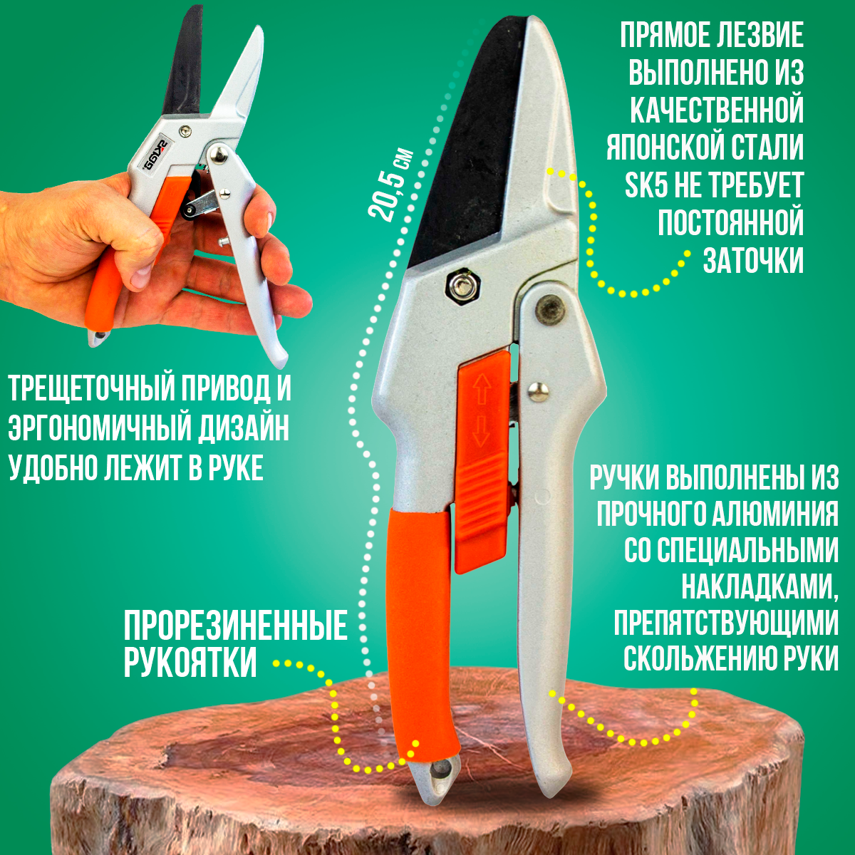 Секатор садовый сучкорез профессиональный с храповым механизмом