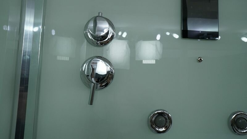В нашей кабинке есть радио и CD,как приятно принимать душ под хорошую музыку . На панельке еще есть возможность включить вентиляцию,многоцветную подсветку и телефон(последнее считаю излишеством)." |