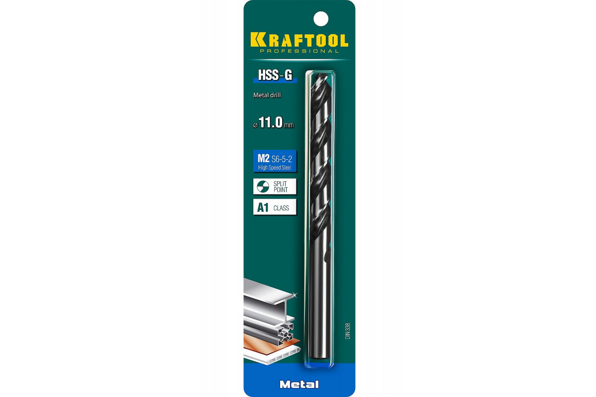 KRAFTOOL HSS-G 11.0 х142мм, Сверло по металлу HSS-G, сталь М2(S6-5-2)