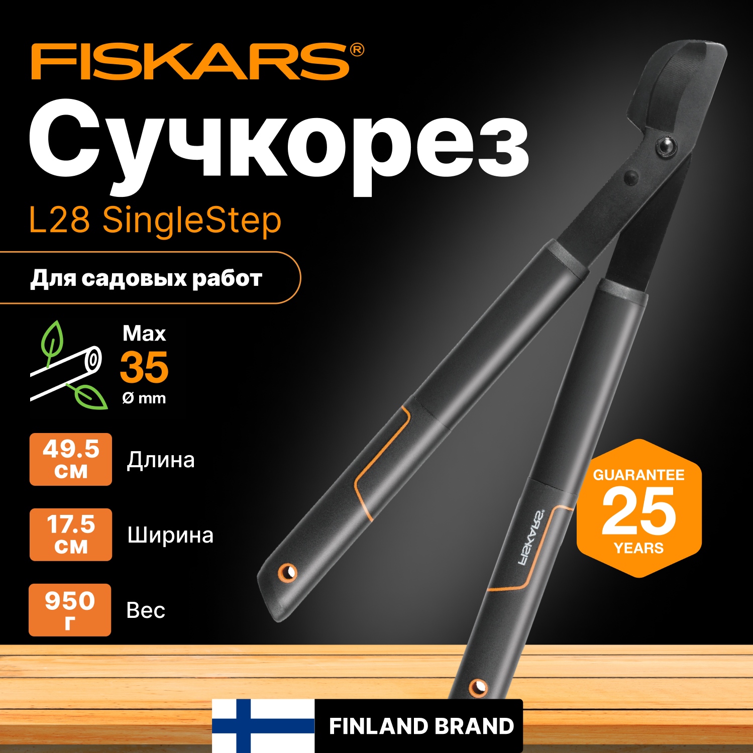 Сучкорез FISKARS SingleStep L28 малый черный/оранжевый (1001432)