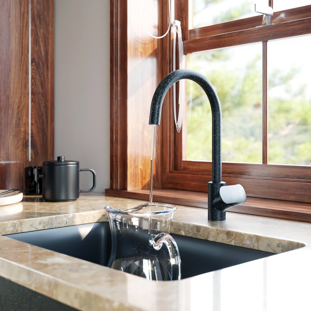 Смеситель для кухни AM.PM Likeс фильтром для питьевой воды, черный, высокий поворотный излив 234 мм