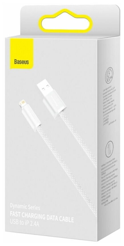 Кабель USB BASEUS Dynamic Series Fast Charging, USB - Lightning, 2.4А, 2 м, белый