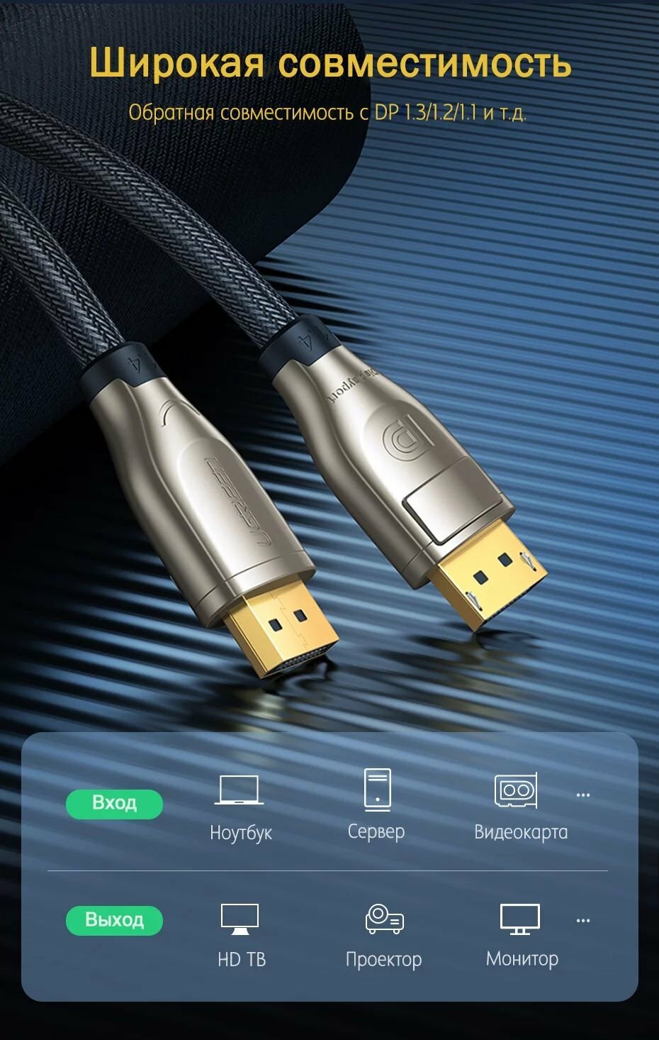 | Отзыв: | Высококачественный кабель UGREEN DisplayPort 1.4 - отличная производительность и надежность