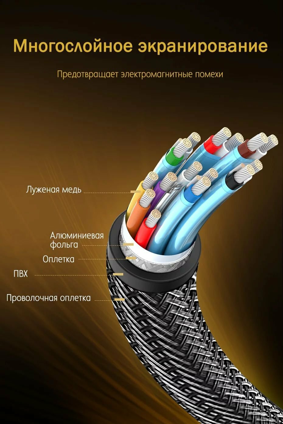 | Особенности | тканевая оплетка / экранированный кабель |