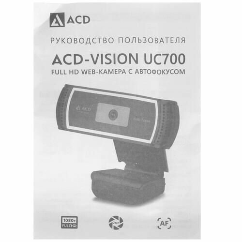 Веб-камера ACD-Vision UC700 CMOS 2МПикс (апрокс.3МПикс), 1920x1080p, 30к/с, автофокус, микрофон встр., кабель USB 2.0 1.5м, шторка объектива, универс.