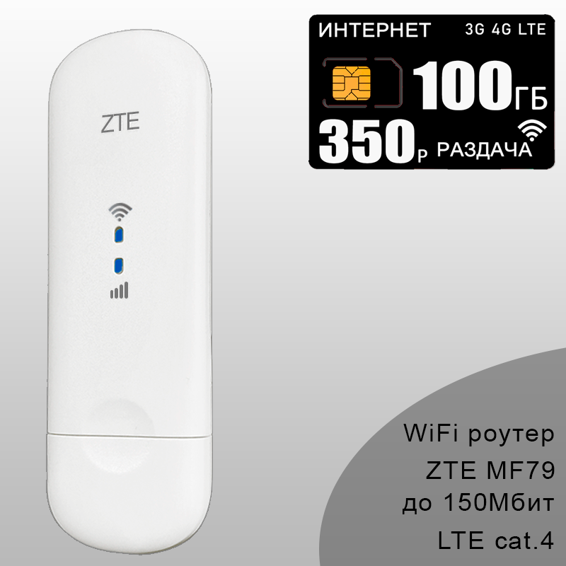 Купить Комплект модем ZTE MF79U + сим карта для интернета и раздачи, 100ГБ за 350р/мес.
