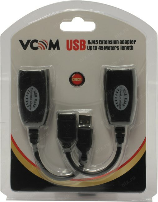 Адаптер-удлинитель Usb-amaf/rj45, по витой паре до 45m , Vcom (cu824) CU824 Адаптер-удлинитель Usb-a .