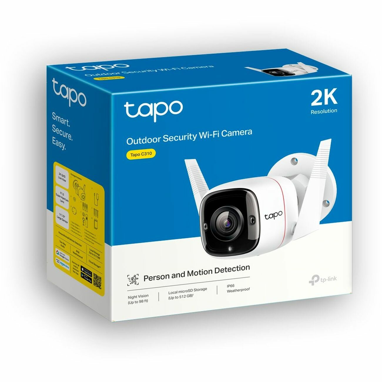 Tapo C310 Внутренняя/наружная IP-камера 3 Мп, ночное видение 30 м, пыле и влагозащищённость IP66, обнаружение движения и отправка уведомлений, двустороннее аудио, поддержка карт памяти microSD {20} (010911)