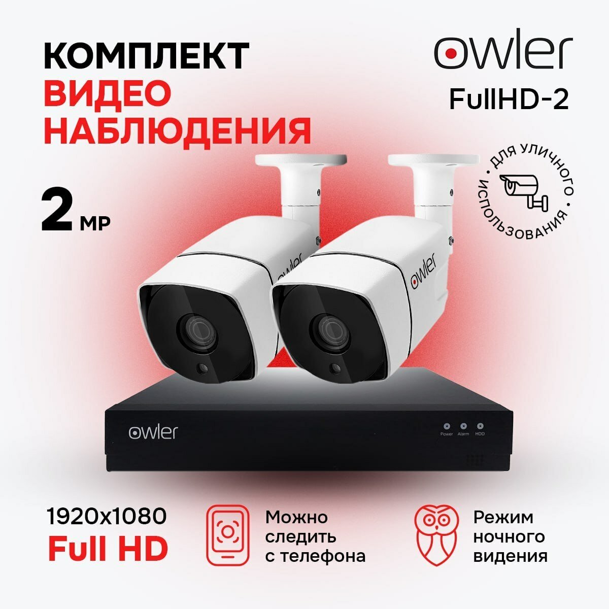 Комплект видеонаблюдения Owler FullHD Уличный 2 камеры+видеорегистратор