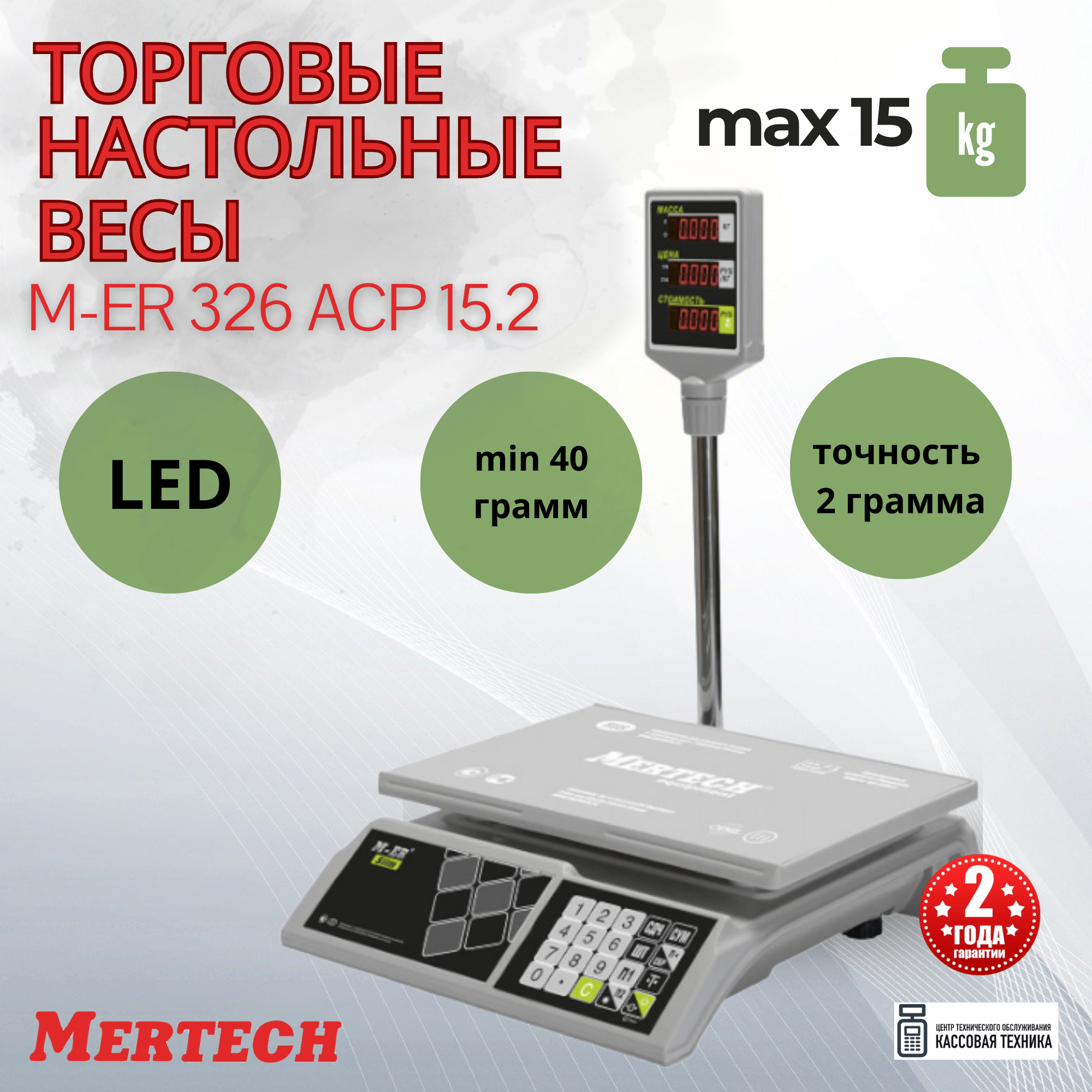 Весы торговые Mertech M-ER 326ACP-15.2 LED, 0,04-15 кг, дискретность 5 г, 325x230 мм, со стойкой