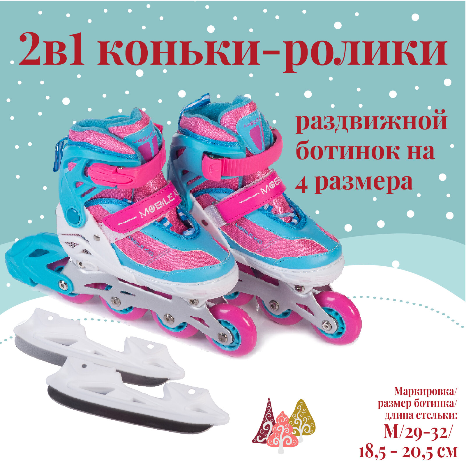 Раздвижные коньки-ролики MOBILE KID Uni Skate (2 в 1), размер M (CYAN PINK)