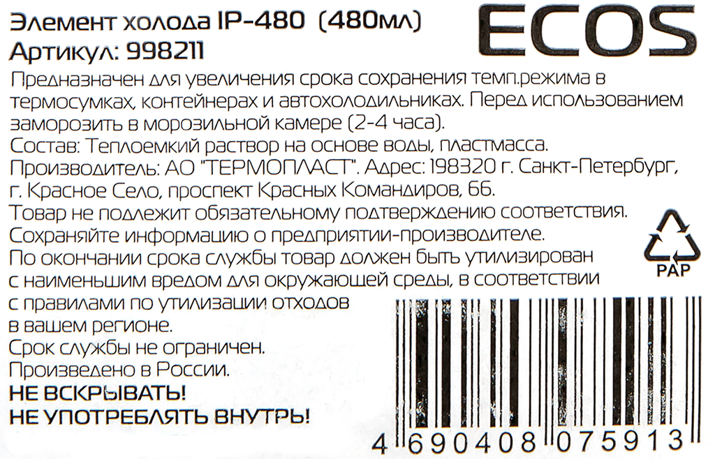 Элемент холода Ecos IP-480 (480мл)