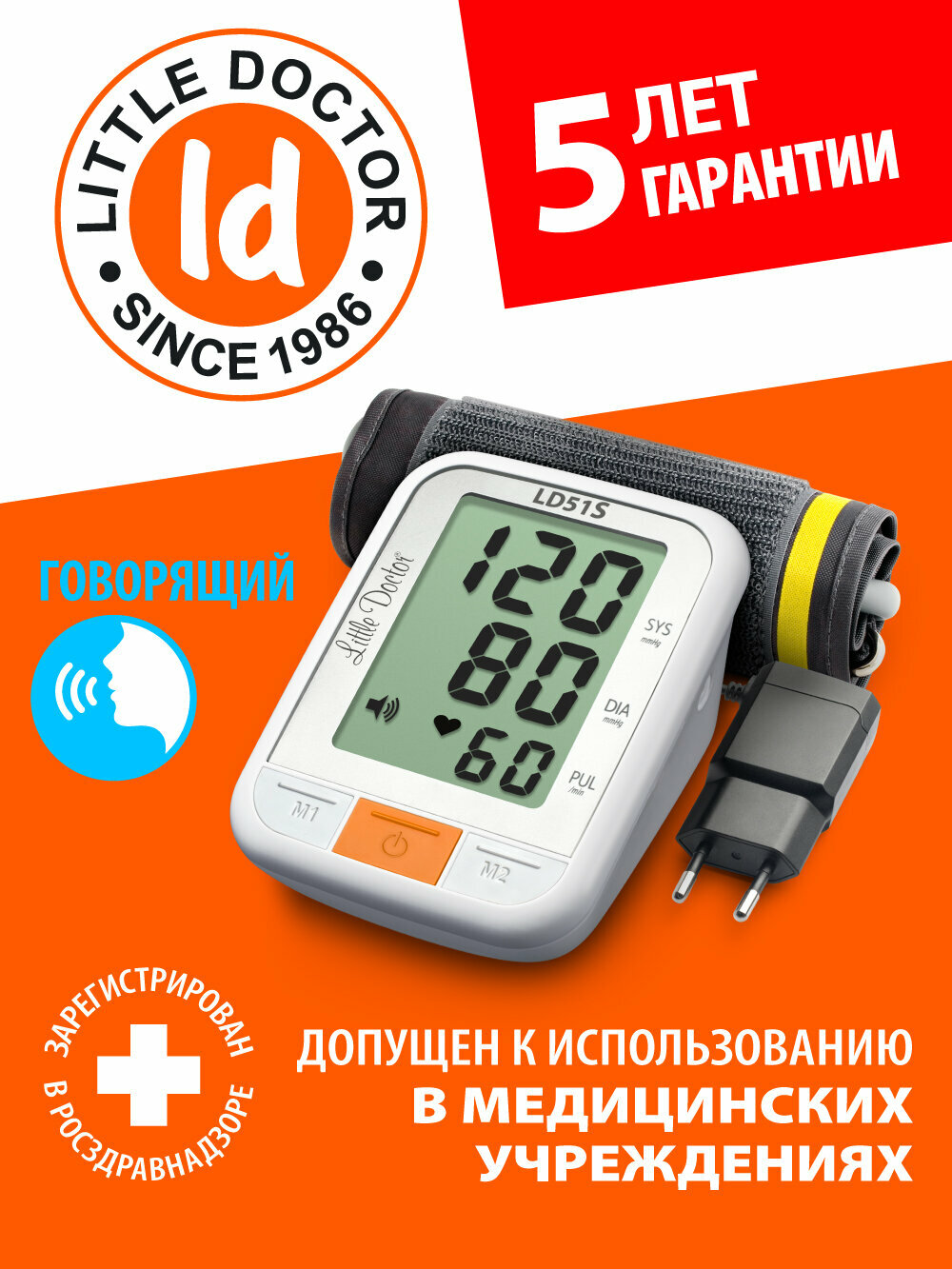 Little Doctor LD51S / Литтл Доктор - автоматический тонометр на плечо с голосовым сопровождением с адаптером и увеличенным дисплеем